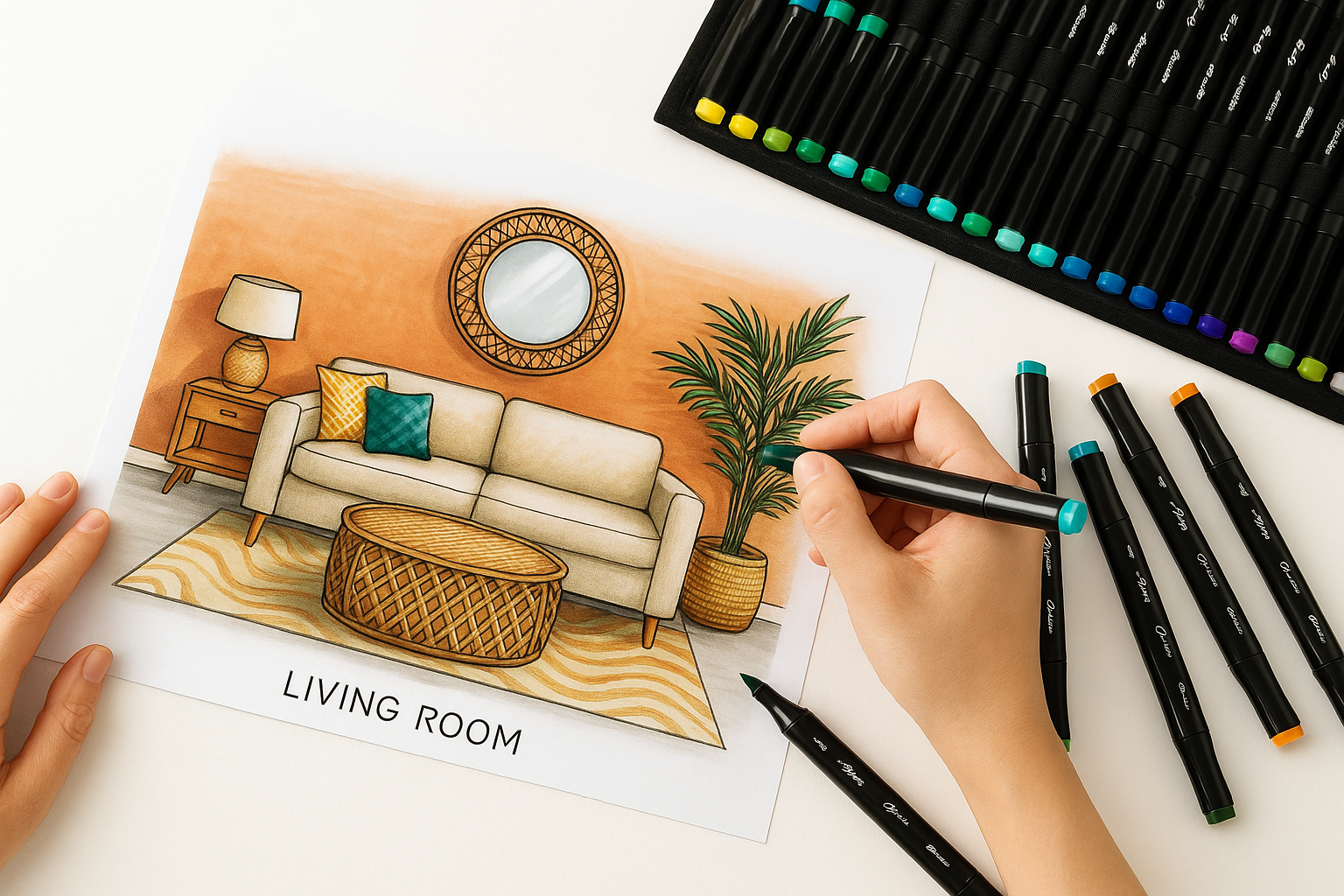 High-pigment pencils and markers resist smudging and fading, while precision drafting tools (compass, scales) deliver consistent, accurate results for presentations and client-approved plans.